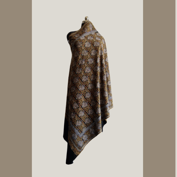 Black Pashmina Jamawar Shawl with Sozni Embroidery